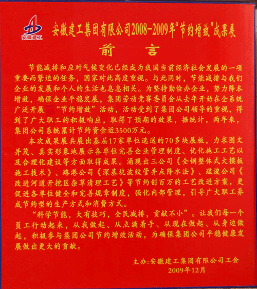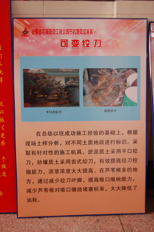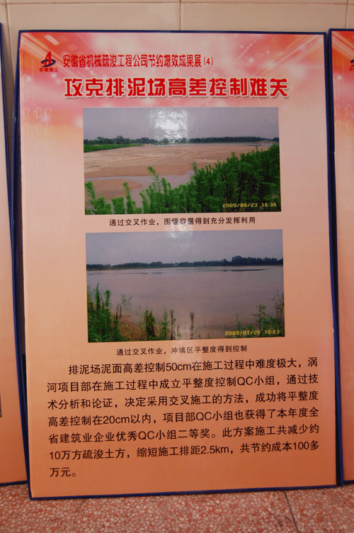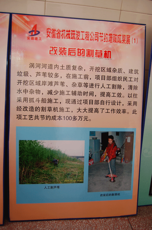 1月11日上午,集團(tuán)公司“節(jié)約增效”活動(dòng)成果巡回展到我公司展出,本次成果展共展出選送的70多塊展板,展出作品圖文并茂、真實(shí)形象地展示各單位完善企業(yè)管理制度,優(yōu)化施工工藝以及合理化建議等方面取得的成果。其中我公司“改進(jìn)河道開挖區(qū)雜草清理工藝”為公司節(jié)約創(chuàng)百萬的工藝改進(jìn)方案,受到了集團(tuán)領(lǐng)導(dǎo)的高度贊揚(yáng)。此舉,不僅健全和完善了規(guī)章制度,強(qiáng)化內(nèi)部管理,而且還引導(dǎo)廣大職工養(yǎng)成節(jié)約型的生產(chǎn)方式和消費(fèi)方式。