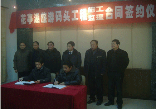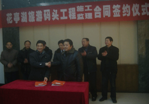 1月18日,我公司中標的安徽省太湖縣花亭湖旅游碼頭工程簽約儀式在太湖縣龍山宮賓館舉行,簽約儀式由太湖縣花亭湖風景區(qū)管理處主持,太湖縣委常委、縣政府常務副縣長李琳以及相關負責人參加了簽約儀式。