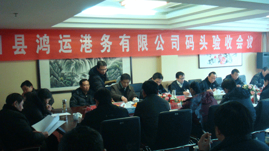 安徽省港航局組織召開鳳陽鴻運碼頭一期工程驗收會。會議聽取了我公司項目經理湯平民的工作匯報。公司副總經理侯力和生產管理部主任李立柱參加竣工驗收會。