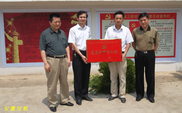 在授牌儀式上,吳曉伍主任對皖江路項目部在施工中不畏艱險、作風過硬、積極向上,團結進取,勇于創(chuàng)新,黨建工作與施工生產有機結合,“創(chuàng)先爭優(yōu)”活動形式豐富多彩,從而有效促進并加快了皖江路工程建設,給予了充分肯定和高度贊揚。對全體參建員工提出了下一步工作的要求和希望:以深入開展創(chuàng)先爭優(yōu)活動為主線,進一步以“黨員先鋒號工程”為載體,全員、全方位、全過程把各項工作落實到每個環(huán)節(jié)和所有崗位,圓滿落實工程進度目標,安全優(yōu)質完成后續(xù)施工任務,認真做好各項總結工作,為集團生產經營工作再創(chuàng)輝煌。