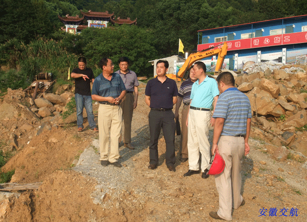8月17日下午,安徽建工集團副總經(jīng)理、總工程師戴良軍,總經(jīng)理助理、安全生產(chǎn)管理部主任郭道真等一行在安徽交航公司總經(jīng)理李世龍、生產(chǎn)管理部主任李立柱的陪同下來到花亭湖旅游碼頭工地,指導(dǎo)檢查工程進展情況。
