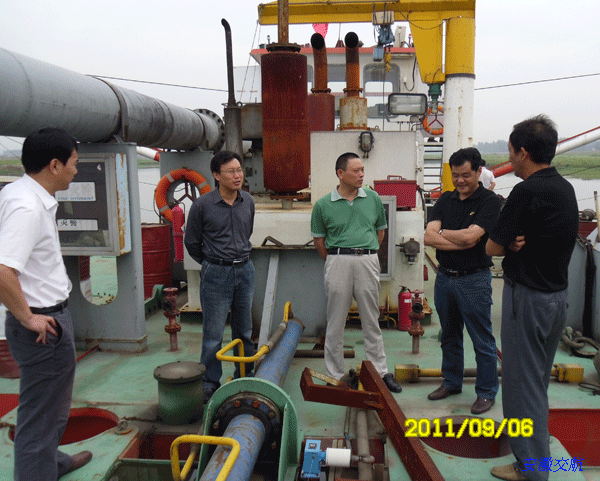 隨后,戴總一行來(lái)到公司第十工程處1600挖泥船上,在公司船隊(duì)主任許元康陪同下仔細(xì)參觀船體,并不時(shí)提出問(wèn)題,都由許元康主任一一解答。集團(tuán)公司財(cái)務(wù)資產(chǎn)部主任李有貴表示該挖泥船在內(nèi)河疏浚行業(yè)具有先進(jìn)技術(shù)水平,因?yàn)榇w可以拆裝,對(duì)于那些不具備通航條件河道的整治工程具有很強(qiáng)的對(duì)口性。