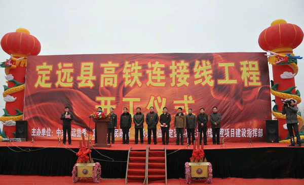2011年12月20日上午10時,公司承建的京滬高鐵定遠(yuǎn)站連接線項目開工儀式在定遠(yuǎn)縣桑澗鎮(zhèn)隆重舉行??h委書記、縣人大常委會主任鄭斌宣布項目開工,縣委副書記、代縣長王成山致辭。我公司副總經(jīng)理侯力、項目經(jīng)理解正勇等出席了開工儀式。典禮由定遠(yuǎn)縣委副書記余成林主持。