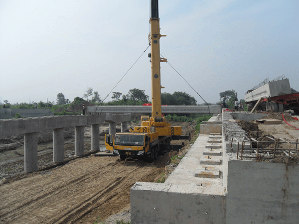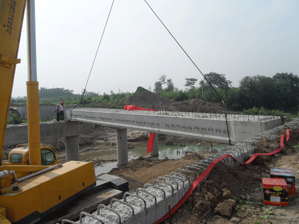 2012年7月22日9時16分,隨著施工現(xiàn)場鞭炮、禮花齊鳴,亳州市南擴(kuò)二路漳河橋安裝正式開始。亳州市重點(diǎn)局副局長郭來運(yùn)、第四項目辦主任修功華、技術(shù)組組長包厚禮、南擴(kuò)二路項目部全體成員參加梁板安裝儀式。