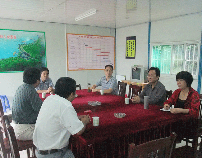 2012年9月12日,在公司黨委副書記、紀委書記曹興堂,紀委副書記解正勇的陪同下,集團公司第一監(jiān)事主席鄭桂林等一行,蒞臨我公司在建的太湖縣花亭湖旅游碼頭項目部檢查指導(dǎo)工作。