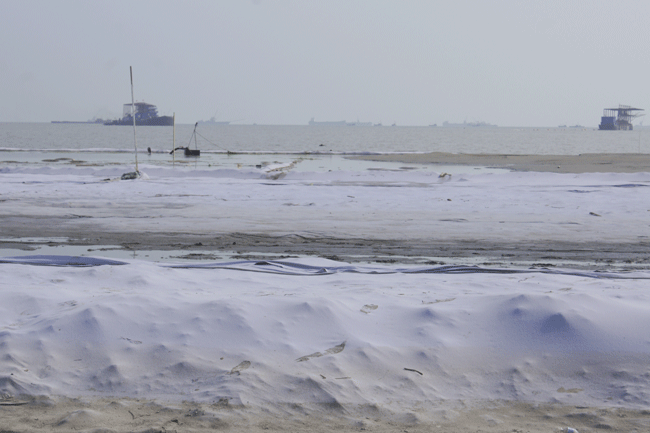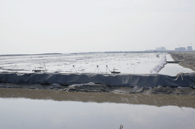 李總一行參觀了天津?yàn)I海新區(qū)圍海造田項(xiàng)目現(xiàn)場(chǎng),考察了真空預(yù)壓技術(shù)的實(shí)際應(yīng)用。真空預(yù)壓法是在需要加固的軟土地基表面先鋪設(shè)砂墊層,然后埋設(shè)垂直排水管道,再用不透氣的封閉膜使其與大氣隔絕,薄膜四周埋入土中,通過砂墊層內(nèi)埋設(shè)的吸水管道,用真空裝置進(jìn)行抽氣,使其形成真空,增加地基的有效應(yīng)力。
