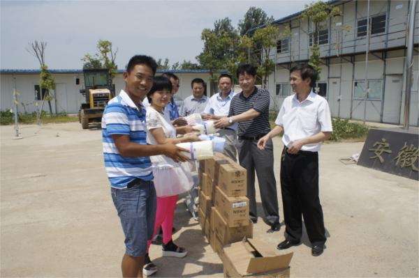 7月31日上午,集團公司副總經理許克順,副總會計師王曉軍,工會副主席吳曉伍等一行在公司黨委書記、總經理李世龍,黨委副書記、紀委書記曹興堂,工會主席王永來等陪同下,冒著酷暑來到當涂青山河工業(yè)園區(qū)工程看望并慰問了堅守崗位的一線職工,給職工送去絲絲清涼。