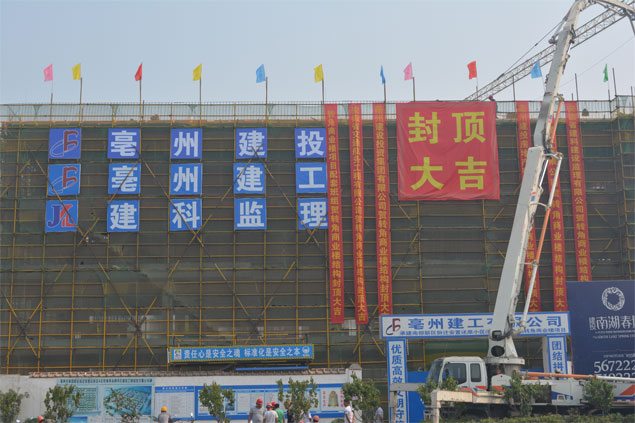 據(jù)悉,該工程是亳州建工承建的又一標(biāo)志性工程,技術(shù)含量高,工期緊。自2014年3月1日開(kāi)工以來(lái),工程項(xiàng)目部認(rèn)真部署,周密安排,快馬加鞭,全力以赴,戰(zhàn)酷暑、趕工期,拼進(jìn)度,最終圓滿完成了工程主體封頂?shù)募榷繕?biāo),得到了各級(jí)領(lǐng)導(dǎo)和亳州市質(zhì)監(jiān)站的高度評(píng)價(jià)。該項(xiàng)目主體封頂,對(duì)于亳州城市建設(shè)環(huán)境優(yōu)化,亳州建工綜合施工能力的提升,必將起到積極的推動(dòng)作用。