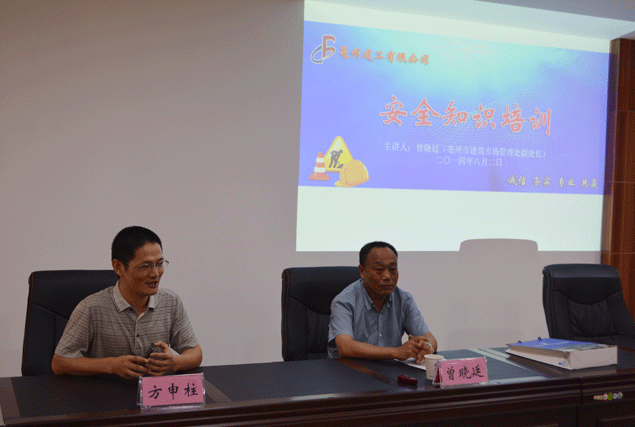 2014年8月2號,在亳州建工有限公司三樓會議室舉辦了建筑施工安全生產(chǎn)知識講座。本此講座由公司總經(jīng)理方申柱主持,并有幸邀請了亳州市建筑市場管理處副處長曾曉廷前來授課。亳州建工全體員工、項目負(fù)責(zé)人等40余人參加了這次培訓(xùn)。