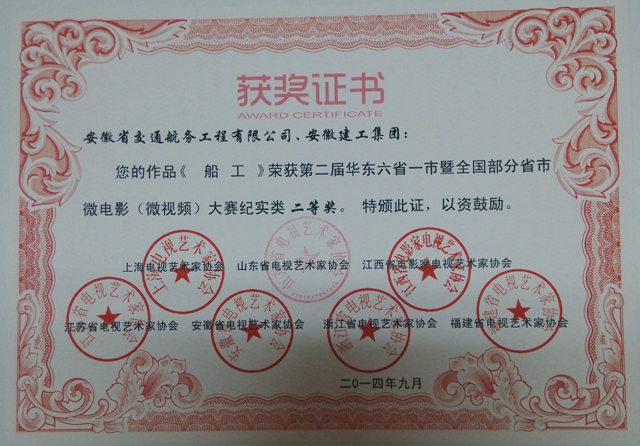 近日,安徽省微電影協(xié)會發(fā)來賀信,在剛剛結束的“第二屆華東六省一市暨全國部分省市微電影作品大賽”評選中,我公司制作、集團公司推薦的參賽作品《船工》榮獲微電影大賽紀實類二等獎。本次大賽由華東六省一市電視藝術家協(xié)會、華人頻道聯(lián)合舉辦,來自山東、上海、江西、江蘇、安徽、浙江等十多個省市的500多部作品參評。