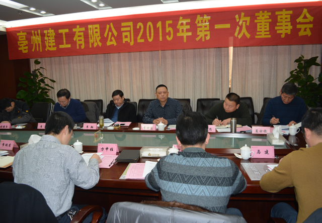 2015年1月31日,亳州建工有限公司在合肥成功召開二屆四次董事會,股東公司主要領(lǐng)導交航公司董事長李世龍、建安集團總經(jīng)理韋翔應邀出席并發(fā)表重要講話,亳州建工董事會成員參加會議,監(jiān)事會成員和公司高管等列席會議。會議由公司董事長李濤主持。
