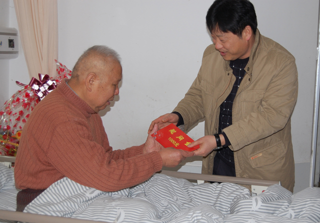 許總轉(zhuǎn)達了集團公司對他們的親切問候,詳細詢問了他們的家庭和生活情況。在病房中許總緊握退休職工李竹軒的手,叮囑他要安心養(yǎng)病,以積極樂觀的心態(tài)與病魔作斗爭,祝他早日康復。感謝他們?yōu)楣景l(fā)展作出的貢獻,希望老同志們在新的一年里能夠一如既往的關(guān)心和支持公司的發(fā)展,為公司的建設獻計獻策。