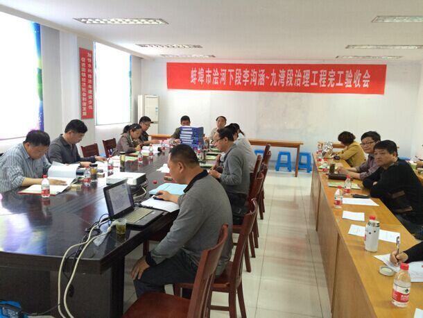 2014年4月24日,固鎮(zhèn)縣淮河支流建設(shè)管理局組織蚌埠市澮河下段治理工程施工2標(biāo)(李溝涵~九灣段河道治理工程)完工驗收,由固鎮(zhèn)縣水務(wù)局、固鎮(zhèn)縣河道管理局、固鎮(zhèn)縣財政局、安徽省水利水電勘測設(shè)計院、蚌埠市安利水利監(jiān)理工程有限公司、淮河河道測繪院等相關(guān)專家組成驗收工作組,驗收工作組進行了現(xiàn)場查看、查閱資料、聽取相關(guān)單位工作匯報,工作組一致認為該工程管理規(guī)范、質(zhì)量滿足規(guī)范要求、資料齊全,同意驗收。蚌埠市水利局基建科科長孫荔,蚌埠市水利工程質(zhì)量監(jiān)督站站長王承芝應(yīng)邀參加。公司劉朝發(fā)副總經(jīng)理、李立柱部長、項目部全體工作人員參加了驗收會議。