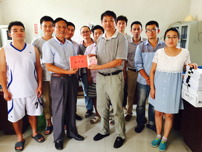 2015年8月12日上午,公司工會主席王永來等一行,冒著酷暑來到我渦陽項目部送清涼,為大家送來了夏季防暑降溫用品和慰問金。