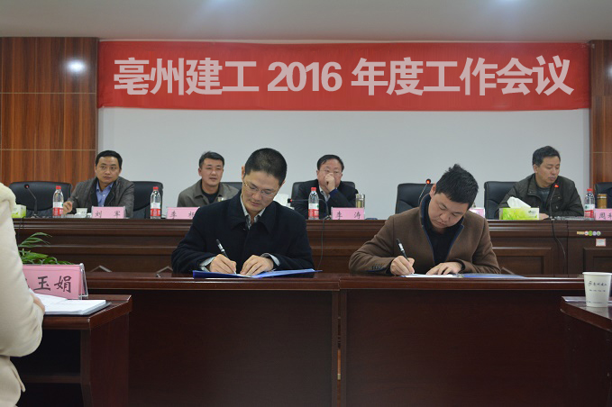 會上,亳州建工副總經(jīng)理周和友總結(jié)了公司2015年度工作,財務(wù)總監(jiān)李現(xiàn)龍作了2015年財務(wù)工作報告,機關(guān)各部門分別匯報了2015年主要工作及2016年計劃;副總經(jīng)理張國玉宣讀了公司人事調(diào)整通報,新調(diào)整人員進行了表態(tài)發(fā)言;總工程師夏士穩(wěn)傳達學習了“2015.8.4”市政污水管網(wǎng)疏通工程較大事故調(diào)查報告;各項目部與公司簽訂了《安全生產(chǎn)責任書》,進一步明確了安全工作職責。
