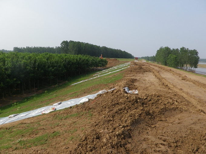 李玉強(qiáng)一行沿著我標(biāo)段剛完工的新建堤防、老堤加固堤頂邊走邊看,詳細(xì)聽(tīng)取了我標(biāo)段項(xiàng)目副經(jīng)理關(guān)于我標(biāo)段目前的防汛工作情況的匯報(bào)。李玉強(qiáng)表示新建成的堤防工程是蚌浮段臨北處今年防汛工作的關(guān)鍵,對(duì)我標(biāo)段堤防邊坡雨淋溝防護(hù)措施表示贊賞,并要求在蚌浮段方臨處各參建單位中推廣。堤防工程土壤砂性大,修復(fù)工作繁重,李玉強(qiáng)囑咐我標(biāo)段在面臨今年可能出現(xiàn)大洪水的情況下,思想上要保持高度重視,并在人力、物力、財(cái)力上給予充足支持,確保堤防工程的安全。