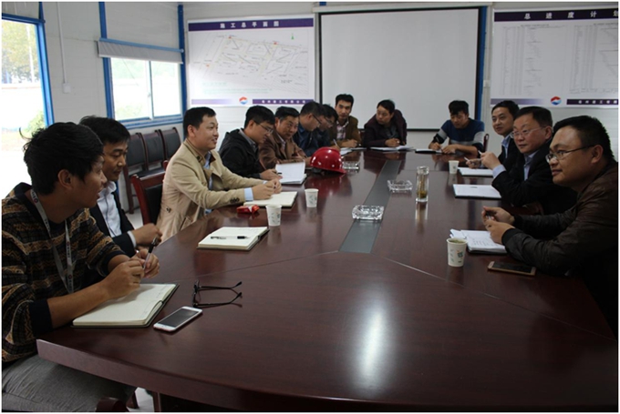 李濤一行在項目負責人徐華磊的陪同下深入施工現場,實地查看了揚塵治理情況。隨后,李總來到員工宿舍,關切地詢問了員工生活情況;接著在會議室召開了全員座談會,與員工進行交流溝通。