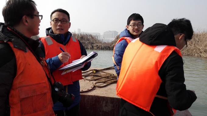 課題組一行在聽(tīng)取項(xiàng)目概況和有關(guān)介紹后,實(shí)地察看了中湖地質(zhì)環(huán)境治理項(xiàng)目(一期、二期)總體控制性詳細(xì)規(guī)劃區(qū)域。根據(jù)察看結(jié)果和背景資料,分析了該科研項(xiàng)目當(dāng)前緊迫的任務(wù)、現(xiàn)場(chǎng)地形地貌和周邊環(huán)境(特別是水系和塌陷區(qū)采空層情況),具體采樣工作包括采集土樣、水樣、沉降觀測(cè)點(diǎn)的選擇,并實(shí)時(shí)檢測(cè)了水樣的pH值等基礎(chǔ)指標(biāo)等。