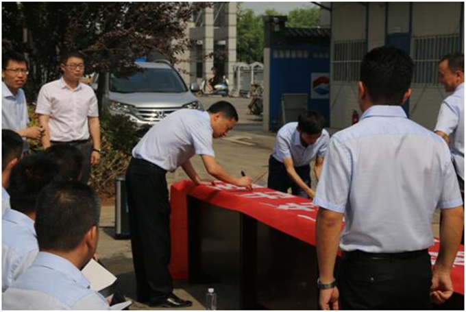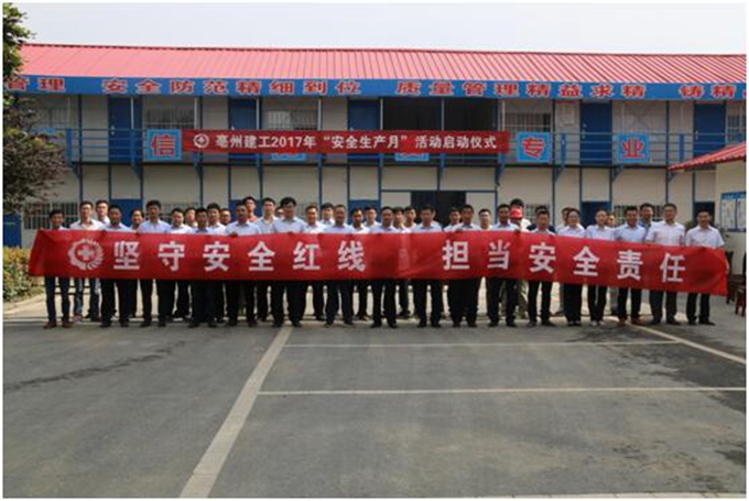 最后,劉總宣布,亳州建工2017年“安全生產(chǎn)月”活動(dòng)正式啟動(dòng),并組織全體參與人員在“堅(jiān)守安全紅線,擔(dān)當(dāng)安全責(zé)任”宣傳條幅上簽名。