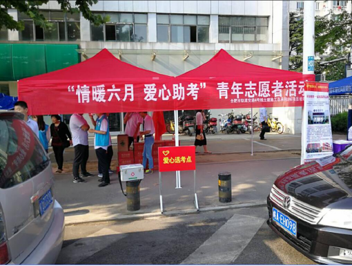 安徽交航合軌4號線3標(biāo)項目職工在祁門路與金寨路交口設(shè)立義工服務(wù)站,為考生主動送水、送文具,指導(dǎo)他們乘坐愛心出租車、公交車,對心里緊張的考生進行心理輔導(dǎo),幫助考生減壓。為陪考家長提供座椅、飲用水等服務(wù)。同時為考生分發(fā)防暑藥品。參與愛心助考公益活動的交航公司職工成為高考期間合肥街頭一道靚麗的風(fēng)景線。