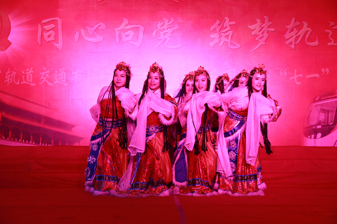 6月下旬,安徽交航合肥軌道交通4號線TJ03項目部接到演出邀請后,公司領導十分重視,公司工會積極組織職工排練節(jié)目。經過5天的緊張排練,該節(jié)目順利通過合肥軌道公司的初審、二審,從38個節(jié)目中脫穎而出,成為15個參演節(jié)目中一朵靚麗的小花,在合肥5條軌道交通線四五十家施工企業(yè)中只有安徽交航、安徽路橋、中鐵四局等9家單位參演。歡快的舞曲、鮮明的節(jié)奏及歌頌的詞句展現(xiàn)出在解放西藏“一面進軍、一面修路”的戰(zhàn)斗中,在實現(xiàn)民主改革的日子里,在邊疆自衛(wèi)反擊的戰(zhàn)場上,解放軍和藏族人民結下的魚水情意。演員們用飽滿的情緒和奔放的舞姿將演出推向高潮。