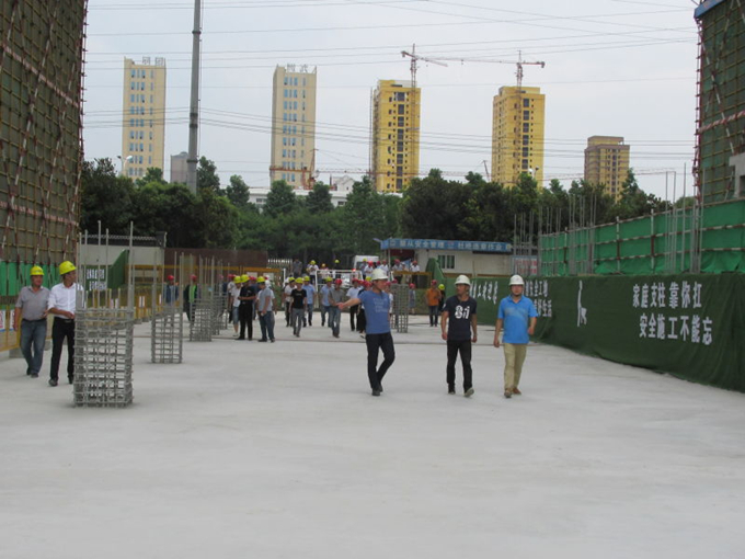 觀摩人員一路邊聽邊記,并對現(xiàn)場結(jié)實整潔的防護欄、防護棚、人行通道,精致干凈的梁柱、樓板、外墻,整齊顯眼的警示標語、材料標識連連稱贊,表示要向亳州建工認真學習項目建設經(jīng)驗,向亳州建工看齊。
