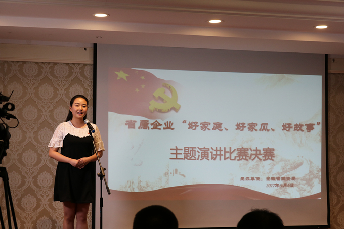 圍繞“好家庭、好家風(fēng)、好故事”主題,為弘揚(yáng)傳統(tǒng)家庭美德,建設(shè)新時(shí)代家風(fēng)文化,9月6日下午,省國資委在安徽飯店舉辦了省屬企業(yè)“好家庭、好家風(fēng)、好故事”主題演講比賽決賽,我公司鄭順瑤代表集團(tuán)公司參加了比賽,并榮獲三等獎(jiǎng)。