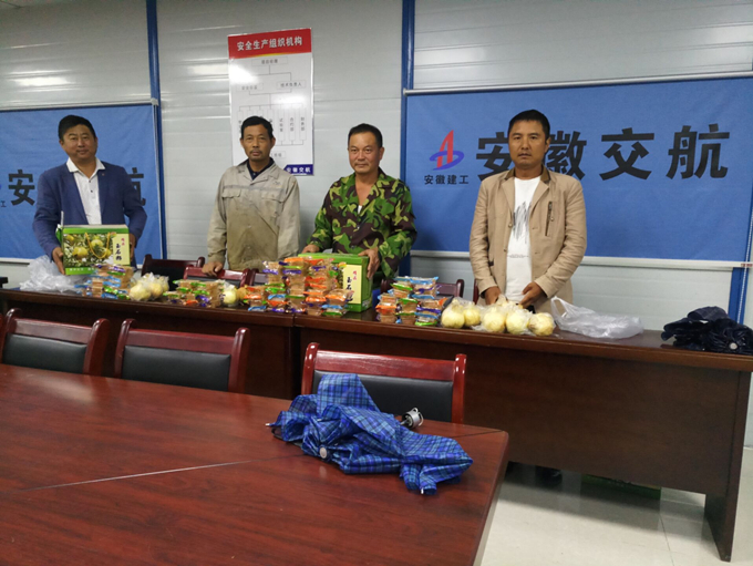 為了讓農(nóng)民工兄弟在工地上過一個(gè)幸福溫馨的國慶節(jié)、中秋節(jié),感受到交航公司帶來的溫暖,項(xiàng)目部將一盒盒象征團(tuán)圓的月餅,一箱箱飲料、水果等食品送到節(jié)日期間堅(jiān)守在本職崗位的農(nóng)民工兄弟手中。慰問品雖簡(jiǎn)單,但承載了合軌項(xiàng)目部對(duì)民工兄弟的祝福與關(guān)愛。
