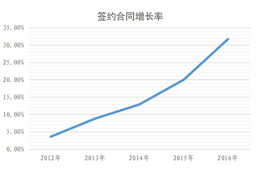 從經(jīng)營指標(biāo)完成情況來看,五年間(2012~2016年),在集團(tuán)公司的正確領(lǐng)導(dǎo)下,安徽交航每年都能超額完成集團(tuán)下達(dá)的經(jīng)營任務(wù),新簽合同額逐年遞增,增長率呈上升趨勢,發(fā)展態(tài)勢良好。