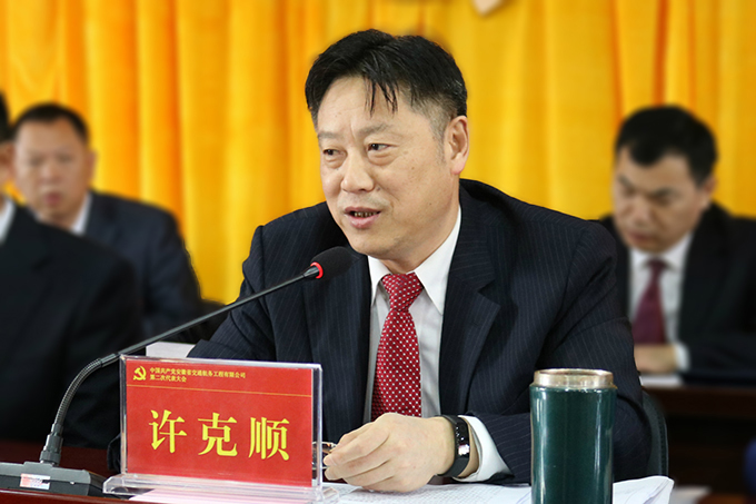 許克順代表集團(tuán)公司黨委,向大會的順利召開表示熱烈祝賀,并在講話中強(qiáng)調(diào),要深入學(xué)習(xí)貫徹黨的十九大精神,以十九大精神指導(dǎo)大會召開、部署未來工作;要統(tǒng)一思想,振奮精神,切實增強(qiáng)發(fā)展緊迫感;要落實全面從嚴(yán)治黨要求,夯實“兩個責(zé)任”,不斷提高黨的建設(shè)科學(xué)化水平;要嚴(yán)明黨的紀(jì)律,嚴(yán)守政治規(guī)矩,確保大會圓滿成功。