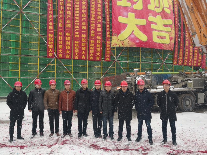雪花紛飛、禮花齊放、鞭炮齊鳴,1月25日上午10時(shí)08分,由亳州建工承建的城建集團(tuán)食品中藥產(chǎn)業(yè)園項(xiàng)目一標(biāo)段封頂儀式隆重舉行,公司副總經(jīng)理劉軍、胡志友及項(xiàng)目各參建方共同見證封頂時(shí)刻。