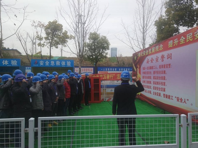 上午11:00時,在地鐵項目部安全體驗區(qū),30余名職工莊嚴地舉起右手,由項目安全總監(jiān)朱紅輝帶領進行宣誓,并鄭重地在安全質(zhì)量宣誓牌上逐一簽名,宣誓活動圓滿完成。