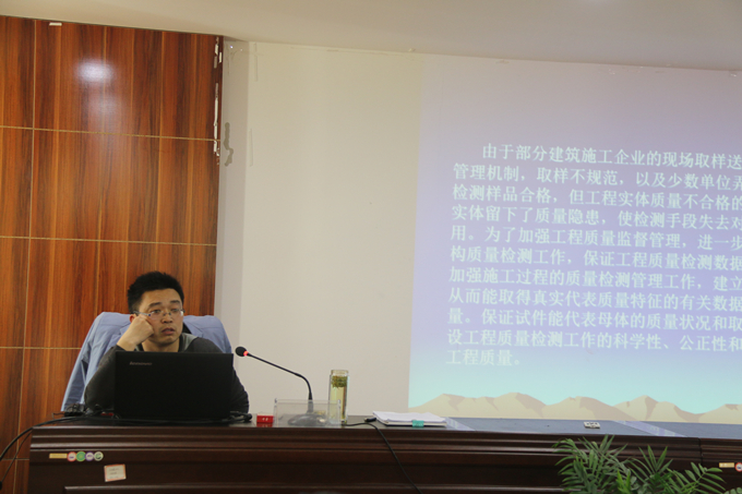 培訓(xùn)中,李淮南根據(jù)國家頒布的相關(guān)文件和技術(shù)法規(guī),向大家闡述了強(qiáng)化見證取樣送檢和檢測過程管理的重要性,針對現(xiàn)階段見證取樣送檢制度執(zhí)行中存在的問題進(jìn)行對策解讀,并結(jié)合工作實際,向大家詳細(xì)介紹了質(zhì)量預(yù)控標(biāo)準(zhǔn)化管理、施工現(xiàn)場質(zhì)量標(biāo)準(zhǔn)化管理和實現(xiàn)質(zhì)量標(biāo)準(zhǔn)化的措施及推進(jìn)計劃。