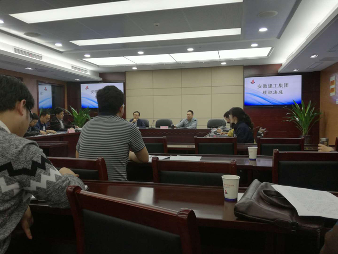 2018年4月12日下午,安徽建工集團(tuán)首屆模擬法庭大賽在集團(tuán)辦公大樓28樓會(huì)議室召開。本次大賽由集團(tuán)總法律顧問申玉恩擔(dān)任總評(píng)委、集團(tuán)法律事務(wù)部副主任王勇主持。我公司法務(wù)人員董浩洋作為選手參加了比賽,沙昱凡進(jìn)行了旁聽。
