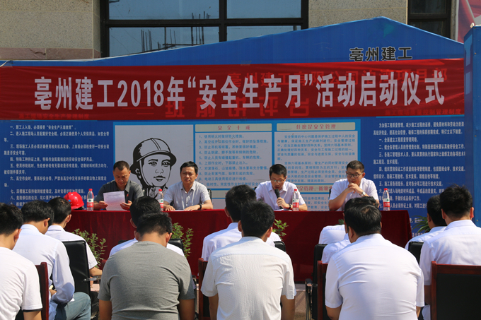 為牢固樹(shù)立“生命至上、安全發(fā)展”理念,不斷增強(qiáng)全員安全意識(shí),提升職工安全素質(zhì)和事故應(yīng)急救援能力,6月1日上午,亳州建工舉行2018年“安全生產(chǎn)月”活動(dòng)啟動(dòng)儀式,公司副總經(jīng)理劉軍、胡志友出席活動(dòng)啟動(dòng)儀式并作總結(jié)講話。