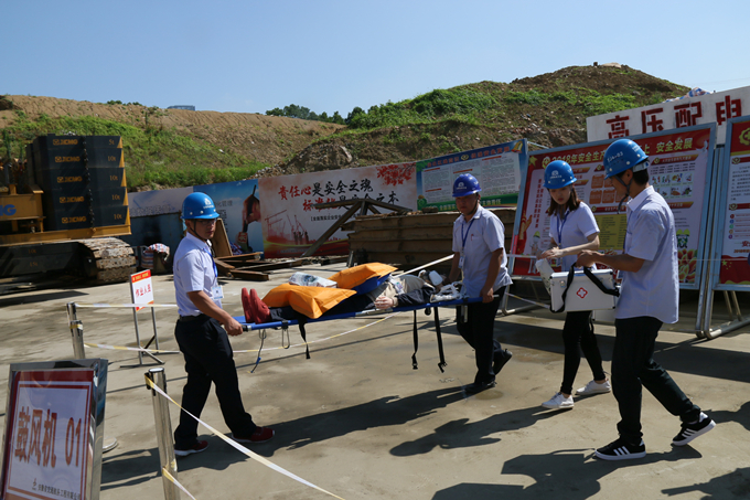 上午9時許,演練正式開始。本次演練模擬物體打擊事故應(yīng)急救援預(yù)案演練,現(xiàn)場安全員用對講機(jī)報(bào)告項(xiàng)目安全總監(jiān),項(xiàng)目安全總監(jiān)接報(bào)告后立即報(bào)告項(xiàng)目經(jīng)理,并啟動應(yīng)急救援預(yù)案。對各小組進(jìn)行了合理分工,第一時間搶救受傷工人并撥打120救護(hù)車送往附近醫(yī)院。最終經(jīng)過救援,受傷工人得到及時救治。事故還演練了受限空間窒息性氣體中毒事故的處理過程。整個演練過程緊張有序,所有參演人員分工明確,應(yīng)急反應(yīng)與處理及時、規(guī)范,現(xiàn)場急救物資準(zhǔn)備齊全,順利完成了既定應(yīng)急演練科目。演練過后,項(xiàng)目部管理人員對此次應(yīng)急演練進(jìn)行了總結(jié)并與公司安管人員進(jìn)行了學(xué)習(xí)交流。