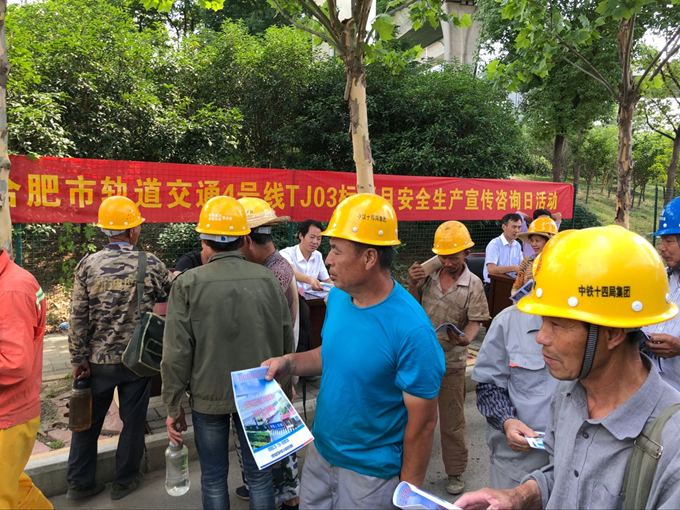 6月16日,合軌4號線TJ03標項目部組織開展2018年“6.16”安全咨詢日活動。