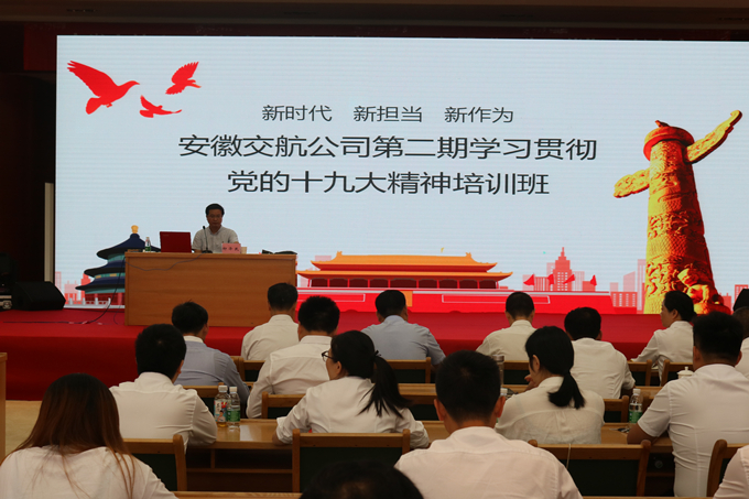 為深入學(xué)習(xí)宣傳貫徹黨的十九大精神,引導(dǎo)全體干部職工以習(xí)近平新時代中國特色社會主義思想武裝頭腦、指導(dǎo)實(shí)踐、推動工作,6月22日下午至6月23日上午,安徽交航公司在機(jī)關(guān)3樓會議室舉辦了第二期學(xué)習(xí)貫徹黨的十九大精神培訓(xùn)班。