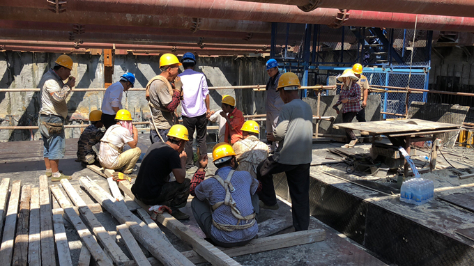 入夏以來,合肥地區(qū)氣候悶熱,廣大職工、協(xié)作隊伍民工兄弟冒酷暑、頂烈日,堅持奮戰(zhàn)在建設工地上。項目部為確保高溫作業(yè)人員的身體健康,合理調(diào)整了現(xiàn)場作業(yè)人員的作息時間,并投入資金購買了大量的防暑降溫物品,加強安全宣傳,進行防中暑及應急演練,并設立飲用點,每天供應綠豆湯,西瓜及鹽汽水,保障民工權益,降低中暑風險。同時囑托大家在夏季施工過程中,一定要注意身體,切莫中暑,感謝大家在這么艱苦的條件下為項目作出的貢獻。