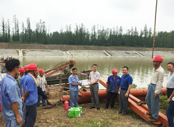 27號(hào)這天,李楊書(shū)記帶領(lǐng)公司工會(huì)干部分別來(lái)到駟馬山工地與鳳臺(tái)船廠,慰問(wèn)了皖吸十二號(hào)等三個(gè)船隊(duì)的廣大船員,給船員職工們送來(lái)了防暑降溫用品和健身器材。李書(shū)記一行所到之處都受到了熱烈的歡迎,船員同志們好像見(jiàn)到了久別的親人,真真切切地感受到組織對(duì)一線職工健康生活的美好愿景,船隊(duì)一直都不是被遺忘的角落!李書(shū)記親切地與船員同志握手、交談,了解一線工人的作業(yè)環(huán)境、生產(chǎn)強(qiáng)度等情況,向這些在高溫下堅(jiān)守一線的工作者表達(dá)崇高敬意和濃濃關(guān)切,用實(shí)際行動(dòng)為工作在一線的職工群眾送來(lái)清涼和安全。