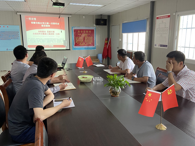 5月22日上午11:30,黃山龍駿家園項(xiàng)目部組織全體職工貫徹學(xué)習(xí)安徽交航公司三屆一次職代會精神,會上認(rèn)真?zhèn)鬟_(dá)學(xué)習(xí)了公司黨委副書記、總經(jīng)理方申柱作的題為《雙輪驅(qū)動、黨建引領(lǐng),全面進(jìn)軍集團(tuán)第一方陣》的工作報(bào)告。