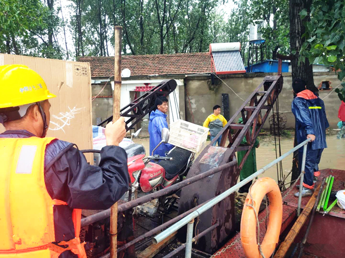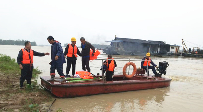 受持續(xù)強(qiáng)降雨影響,防汛抗洪形勢極其嚴(yán)峻。7月19日,安徽交航引江濟(jì)淮疏浚工程項(xiàng)目經(jīng)理衛(wèi)邦宏一早接到當(dāng)?shù)卮逦瘯?huì)電話通知,當(dāng)?shù)睾拥浪簧蠞q,導(dǎo)致附近有兩戶村民被困,跨河高壓線也存在安全隱患。