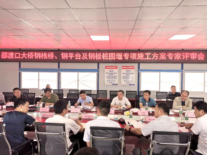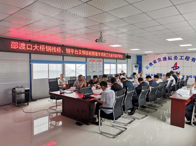 7月19日上午,安徽交航利辛縣西淝河邵渡口大橋建設(shè)工程鋼棧橋、鋼板樁圍堰專項(xiàng)施工方案專家評審會在利辛縣召開。公司黨委委員、副總經(jīng)理張瓊主持會議。