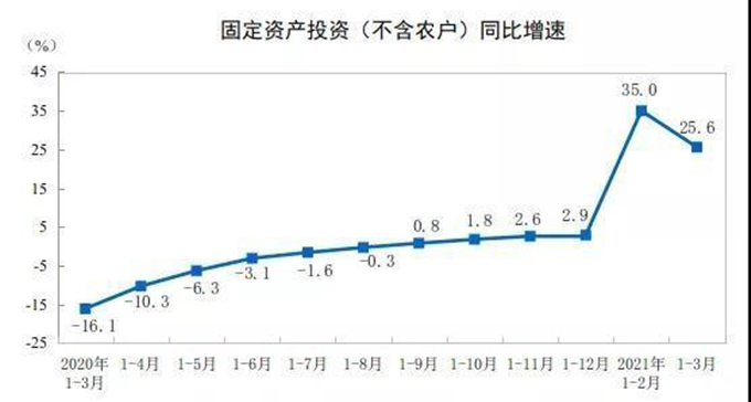 1-3月份,全國固定資產(chǎn)投資(不含農(nóng)戶)95994億元,同比增長25.6%;比2019年1-3月份增長6.0%,兩年平均增長2.9%;經(jīng)季節(jié)調(diào)整后與去年10-12月份環(huán)比增長2.06%。其中,民間固定資產(chǎn)投資55022億元,同比增長26.0%。從環(huán)比看,3月份固定資產(chǎn)投資(不含農(nóng)戶)增長1.51%。