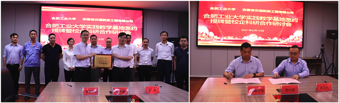 5月10日下午,安徽交航公司和合肥工業(yè)大學(xué)校企實(shí)踐教學(xué)基地簽約授牌暨校企科研研討會在引江濟(jì)淮項(xiàng)目部舉行。公司黨委書記、董事長、總經(jīng)理方申柱與合肥工業(yè)大學(xué)土木與水利學(xué)院院長王靜峰舉行會談,雙方就實(shí)踐教學(xué)基地建設(shè)、相關(guān)科研課題內(nèi)容以及深化產(chǎn)學(xué)研合作等方面進(jìn)行了深入溝通與交流,并共同簽約授牌合肥工業(yè)大學(xué)實(shí)踐教學(xué)實(shí)習(xí)基地。