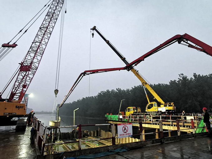 5月20日凌晨1時(shí)許,歷經(jīng)10余個(gè)小時(shí)的冒雨奮戰(zhàn),由安徽交航公司承建的利辛縣西淝河邵渡口大橋建設(shè)工程主橋15#墩圍堰封底混凝土澆筑順利完成,標(biāo)志著邵渡口大橋主橋施工掀起全面大干高潮。