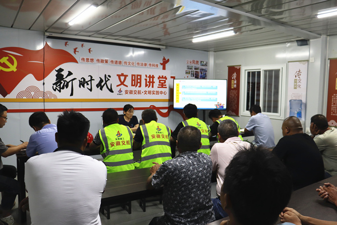 8月26日晚,公司安全監(jiān)察部主任朱云珍在引江濟(jì)淮項(xiàng)目新時(shí)代文明實(shí)踐點(diǎn)為項(xiàng)目施工班組人員進(jìn)行了安全教育培訓(xùn)。