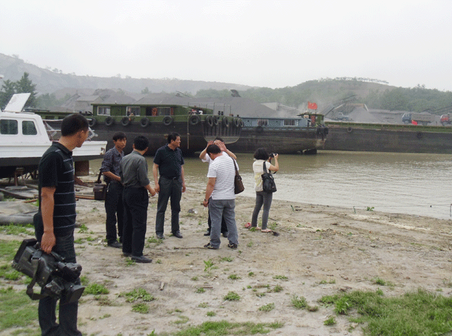 2013年5月23日,全椒縣電視臺(tái)記者在縣交通局副局長劉漢高、海事處處長李榮福的帶領(lǐng)下來公司滁河航道疏浚工程現(xiàn)場(chǎng)采訪,公司工會(huì)主席王永來、項(xiàng)目部技術(shù)負(fù)責(zé)人劉浩然陪同采訪。