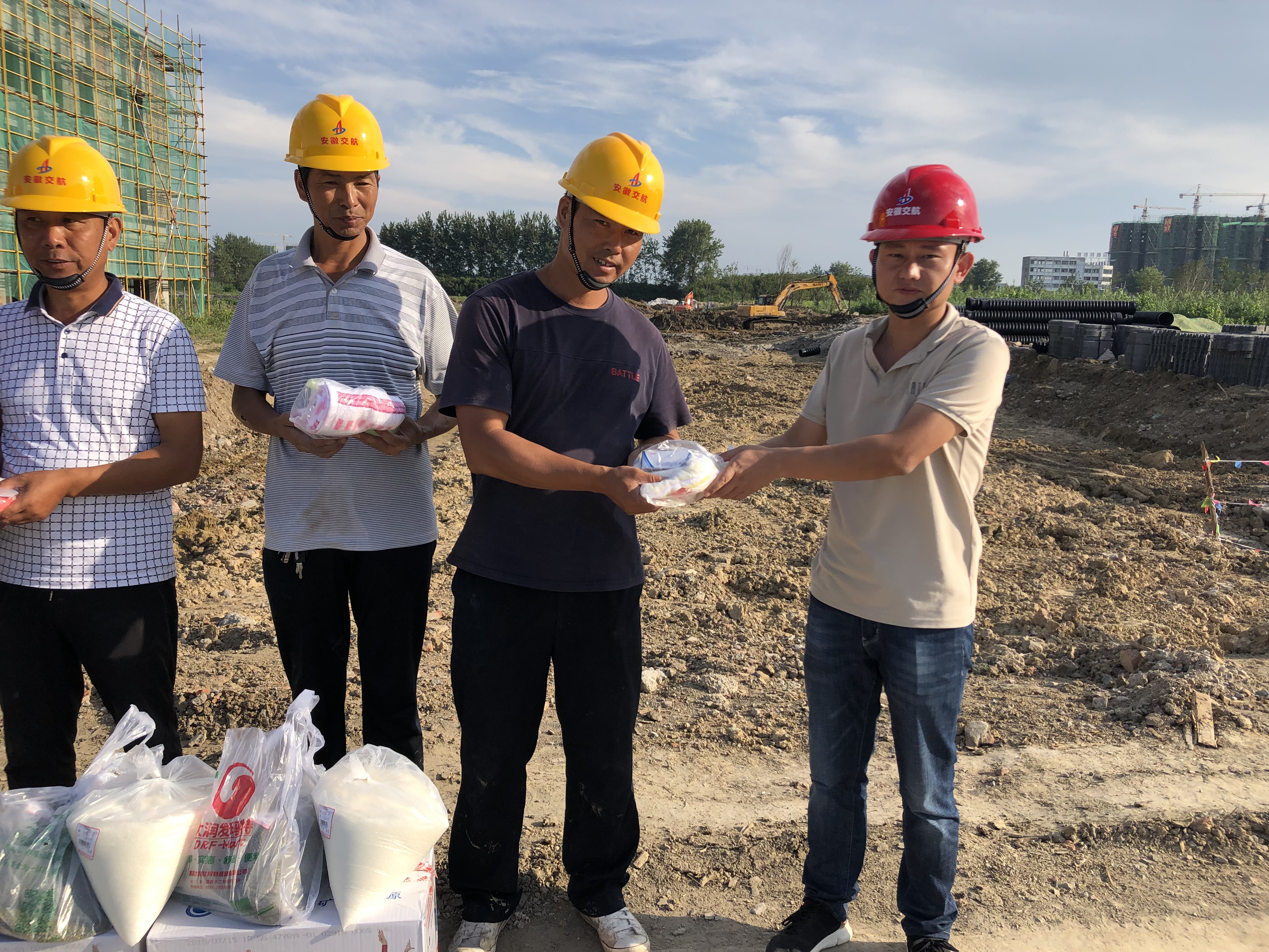 大暑雖已過去,可氣溫依舊炎熱,為了加緊工期,現(xiàn)場施工人員起早貪黑的在工作崗位上辛苦勞作。多金泗縣國際汽車城EPC項目黨支部開展了送清涼黨日活動,為奮戰(zhàn)在一線的民工兄弟們送去礦泉水、綠豆、花露水等防暑降溫物品,感謝他們?yōu)槭┕どa(chǎn)所做的努力和貢獻。