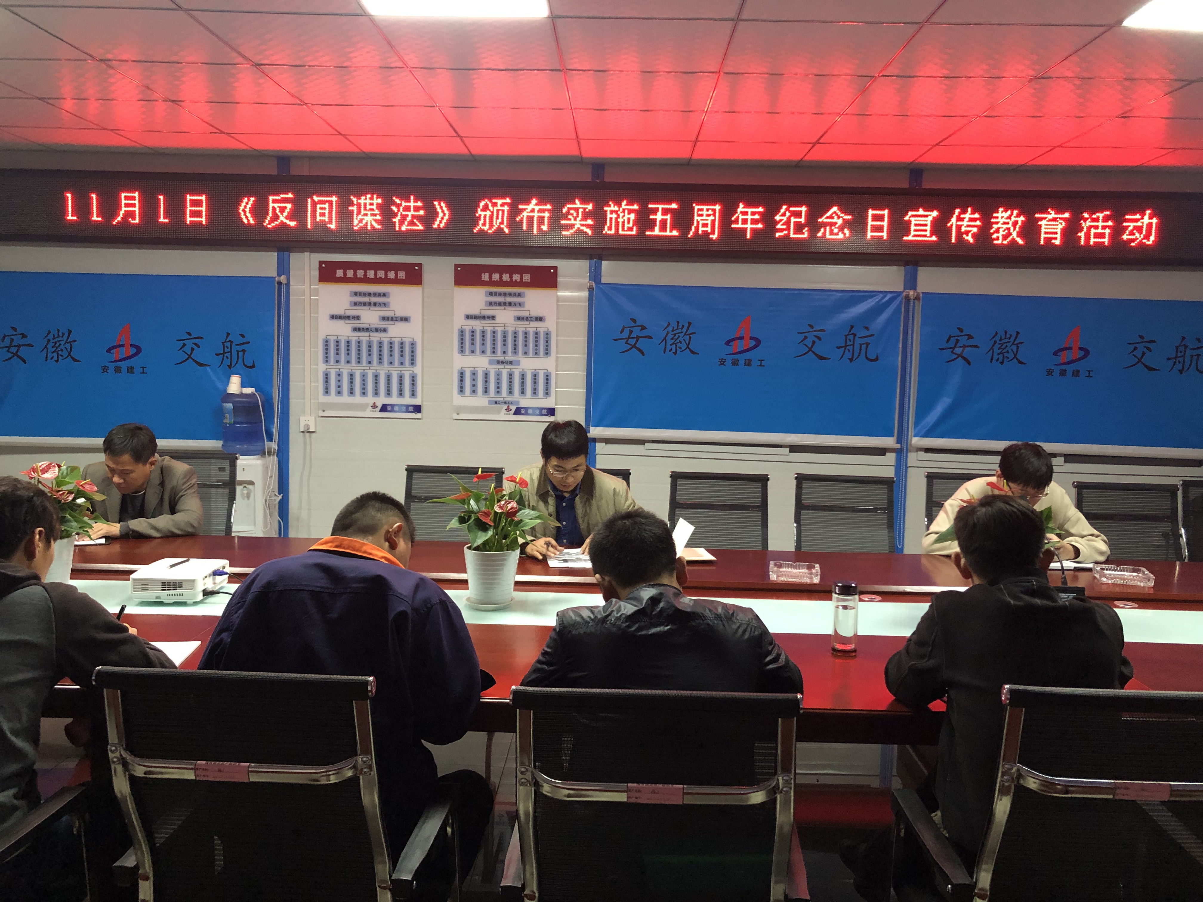 2019年11月1日,反間諜法已頒布五周年,為進一步增強員工的反間諜安全防范意識,使維護國家安全、保守國家秘密思想深入人心。11月8日,多金泗縣項目部開展學(xué)習(xí)《反間諜法》解釋及案例分析,項目部全體員工參加學(xué)習(xí)。